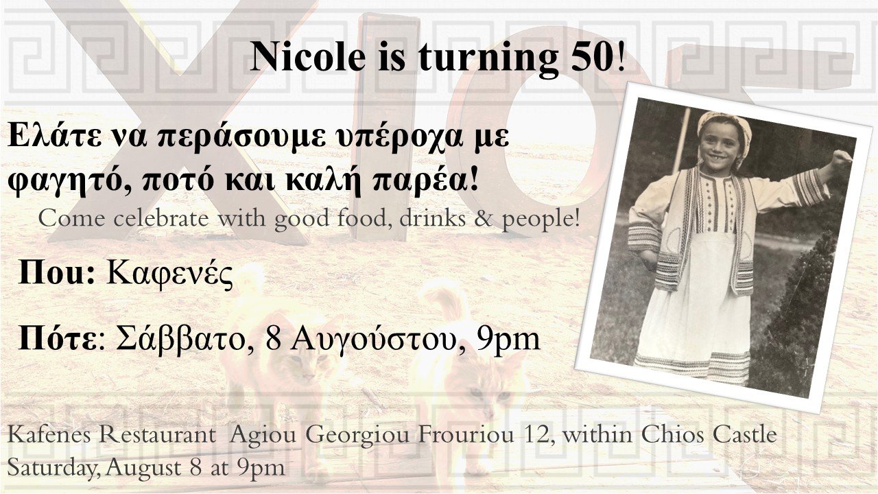 My 50th dinner is on Saturday August 8th at Kafenes Restaurant, within Chios Castle .